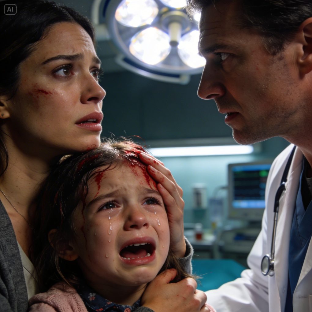 At the hospital, the nurse at triage took one look at Mia and moved them through faster than Laura expected. A doctor named Dr. Harris examined the cut, asked gentle questions, and sent Mia for imaging because of the way she flinched when he touched the side of her head.